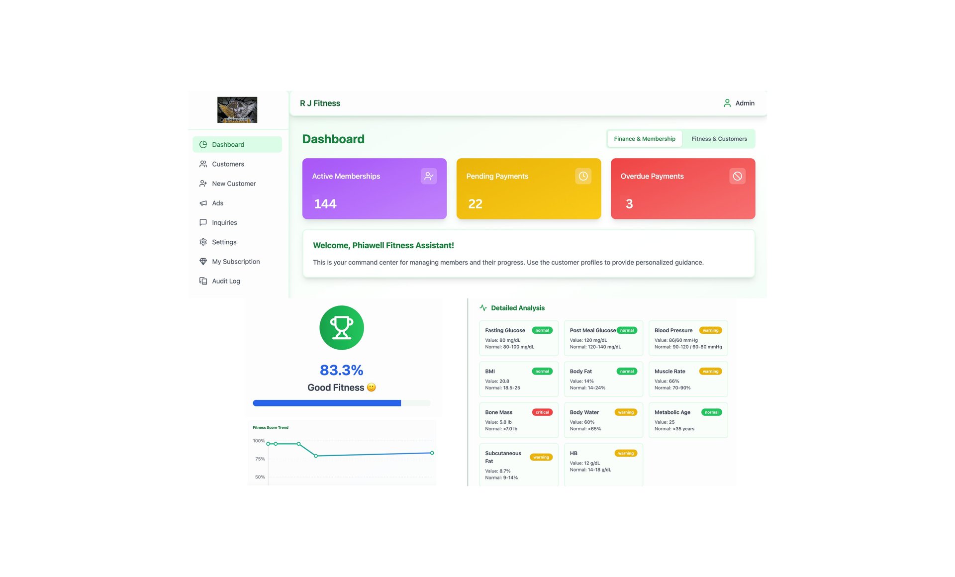 Phiawell empowers fitness centres, schools, and communities with smart health insights and technology.