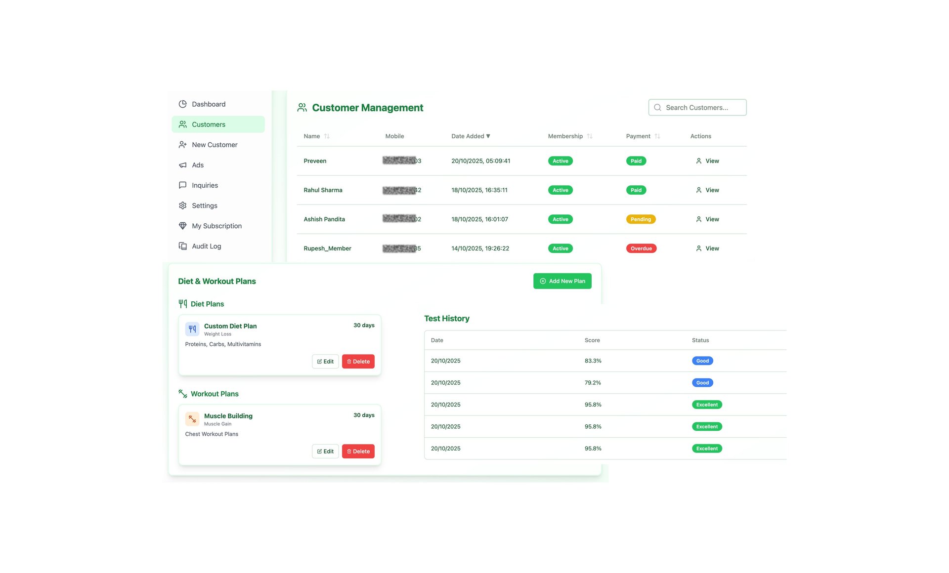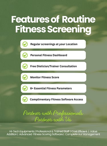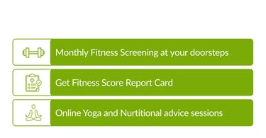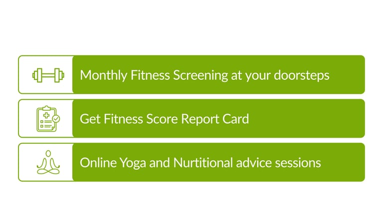 Monthly home fitness screenings with yoga and nutrition plans — track, improve, and recheck your health the smart way.