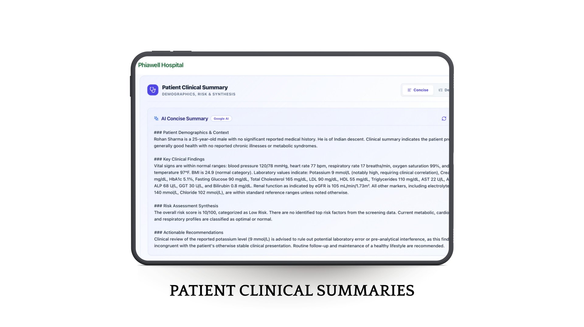 With built-in risk assessment, smart analytics, and concise patient summaries, doctors can make faster, more accurate decisions while shifting towards preventive care.