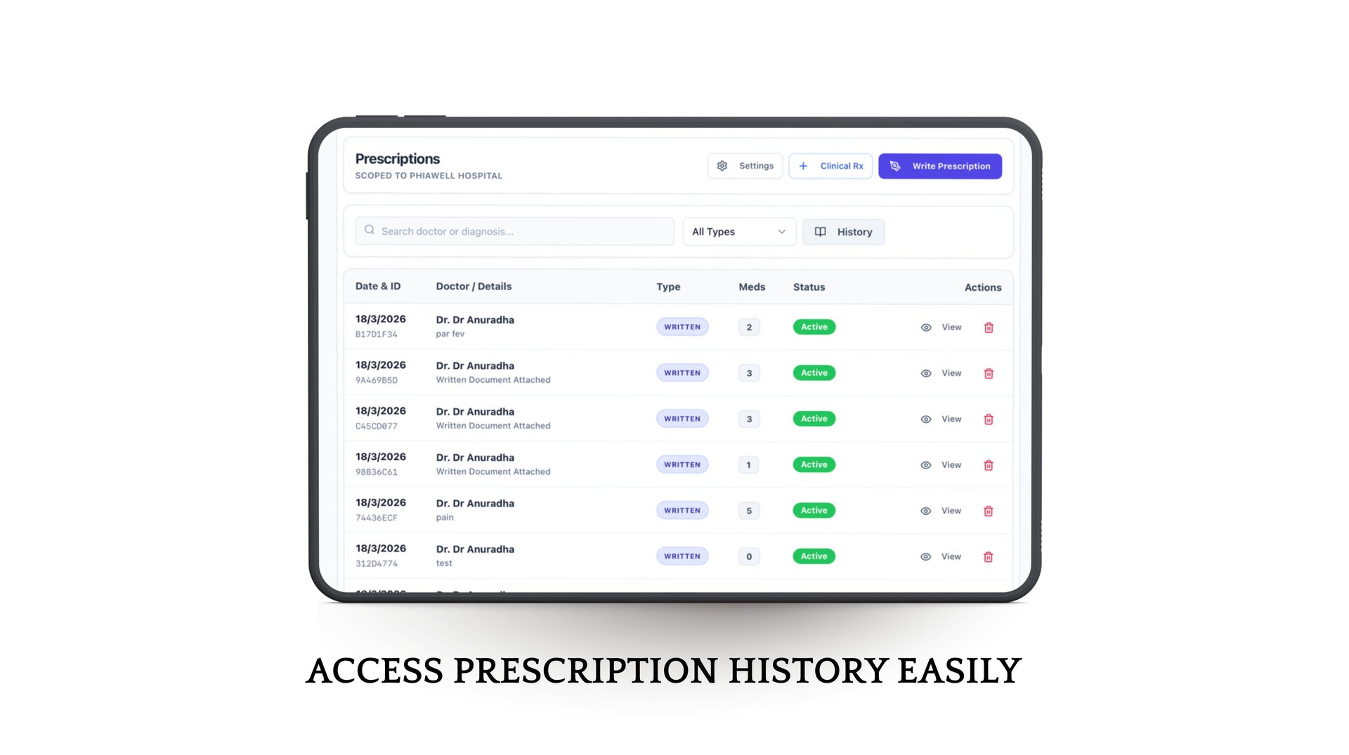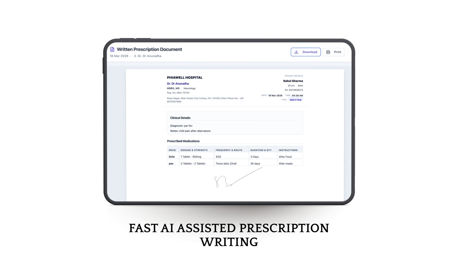 Phiawell brings all patient data—visits, prescriptions, reports, and history—into one seamless platform, reducing manual work and saving time.