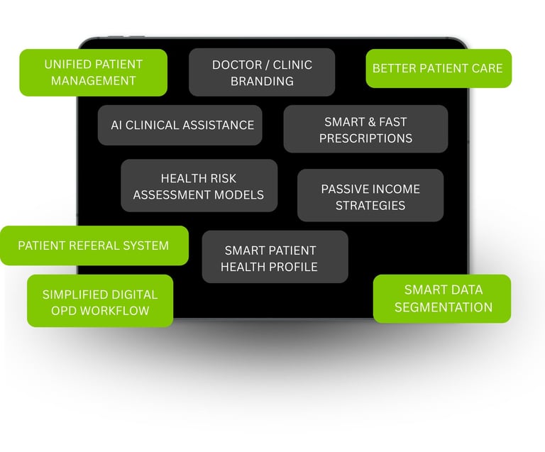 We empower Doctors, clinics and hospitals with our technology-enabled platform, enabling efficient and structured patient management through single account and health risk evaluations at the OPD level.